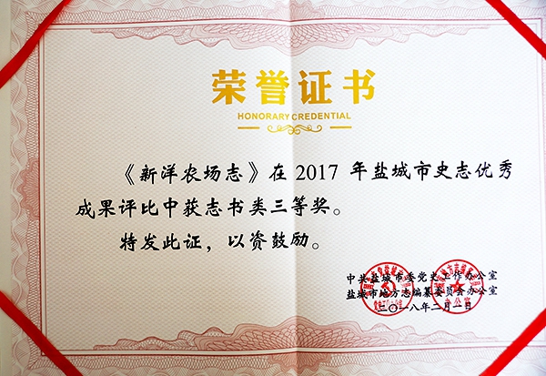近日,在鹽城市委黨史工作辦公室、地方志編纂委員會辦公室開展的2017年鹽城市史志優(yōu)秀成果評選活動中,榮獲志書三等獎。