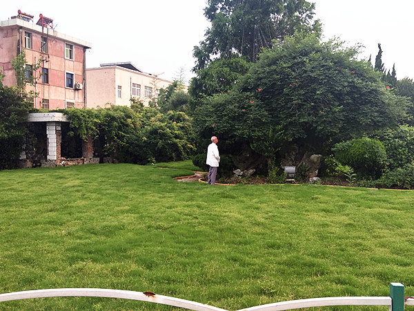 老人已百歲高齡,卻耳聰目明,滿面紅光,滿頭銀發,只腿腳有些許不便,常常愛在公園里散步,和藹可親的臉上總是掛著笑容。他告訴筆者:“現在農場環境越來越好了,空氣清新,還有金龍灣生態園、生態文化園,剛吃完晚飯,出來遛遛,天氣熱了,草長得也快,就順手給拔了。”過了會兒,老人見草基本清除了,就站起來,繼續在公園里散步,時而又駐足欣賞公園花開正艷的石榴樹,臉上洋溢著滿足的笑意。