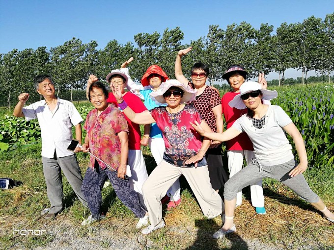 7月16日清晨,淮海農(nóng)場太極隊(duì)隊(duì)長宋巧英再次邀請隊(duì)員們共進(jìn)早餐,然后一起到淮海愛蓮苑賞花、拍照。20多位太極隊(duì)員滿面春風(fēng)、賞美景、看荷花、拍照,大家說說笑笑地度過了一段美好的時(shí)光。