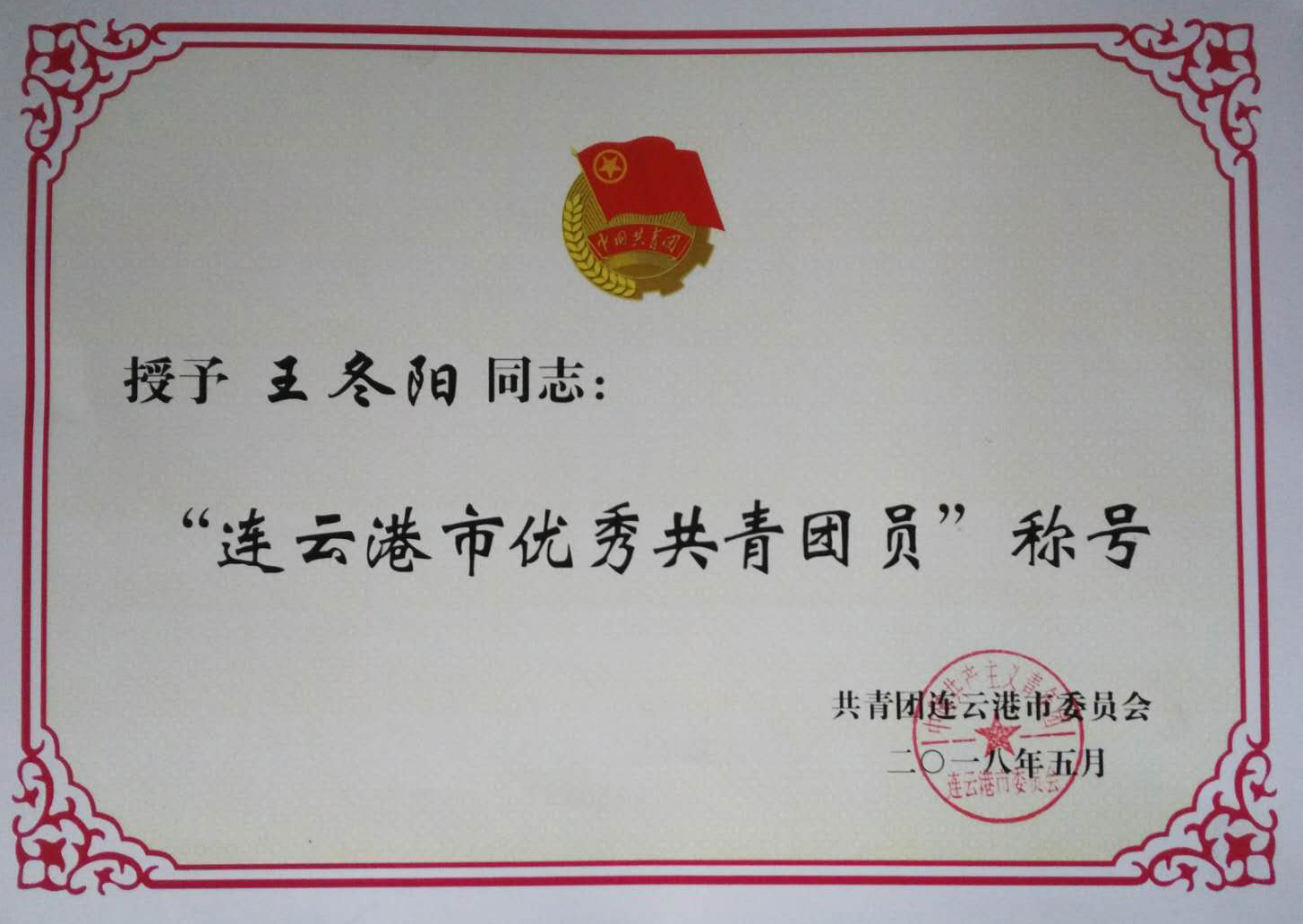 近日,從共青團(tuán)連云港市委員會(huì)傳來喜訊,東辛農(nóng)場(chǎng)社區(qū)東方路居委會(huì)干事王冬陽(yáng)被授予2017年度“連云港市優(yōu)秀共青團(tuán)員”榮譽(yù)稱號(hào)。