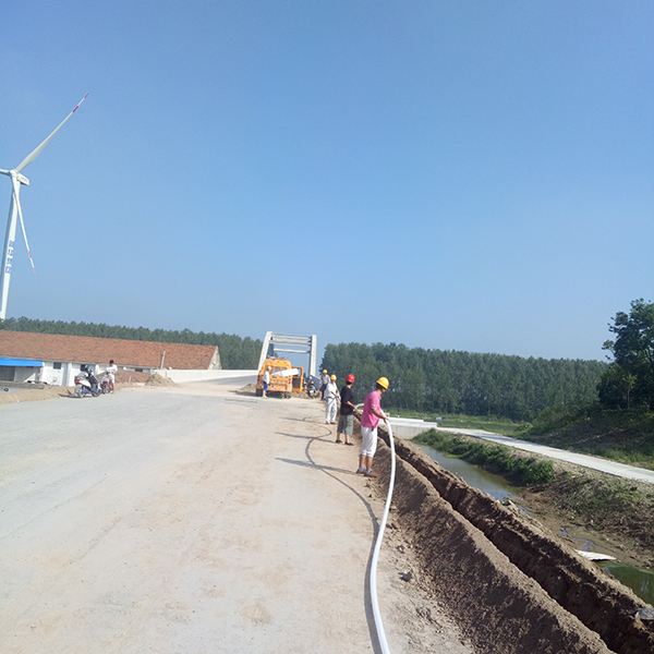 8月8日,室外溫度高達36度,在新洋農場黃沙河大橋項目建設現場,水電中心工作人員冒著高溫布放黃沙河大橋延伸道路亮化電力穿線管。