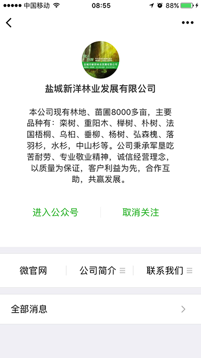 “你好,歡迎關(guān)注新洋林業(yè)有限公司!”日前,“鹽城市新洋林業(yè)有限公司”微信公眾號正式上線。