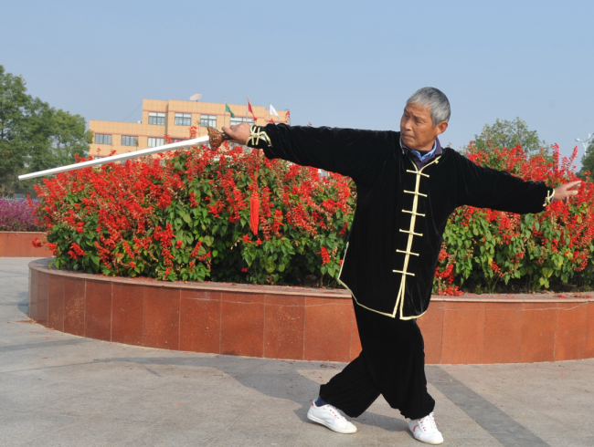 兒子的鼓勵,教練會長的耐心勸導和眾多太極好友的大力支持,從此也讓林耀國克服了自卑的心理,增強了學練太極的信心。他不但天天早上第一個到現(xiàn)場,找先來的陪著他練太極,晨練結束后,還留下來請教練對他補課,糾正動作,講解運拳舞劍道理。回家后他也是對著鏡子堅持學練,特別是對高難度動作反復操練,細心琢磨每個動作的規(guī)范要領,真正做到了拳不離手,訣不離口。功夫不負有心人,對一個上了歲數(shù)的老人,也這樣的磨練,他從不會到會,從會到比較熟練,僅過了幾個月的時間,基本上能把楊式太極拳24-48式、太極劍32-42式很流暢地用動作展示出來,現(xiàn)在的他已經(jīng)是太極協(xié)會里的主力隊員了。