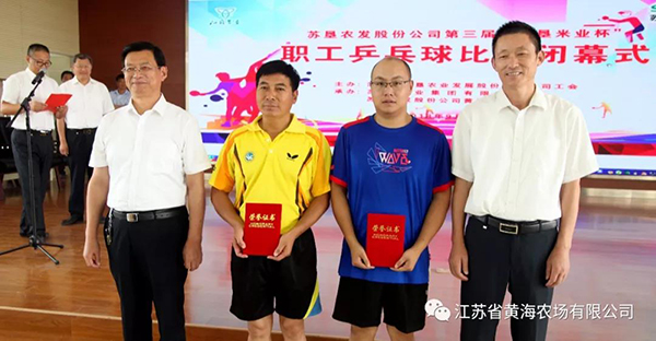 日前,蘇墾農發股份公司第三屆“蘇墾米業杯”乒乓球比賽圓滿落幕。新洋分公司副總經理仰海洲出席頒獎儀式。