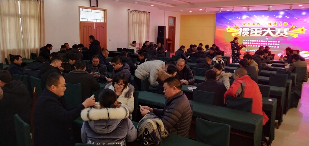12月29日下午,慶元旦職工摜蛋比賽在招待所南會(huì)堂舉行,農(nóng)場(chǎng)干部職工積極組隊(duì)參賽,共組織40對(duì)職工參加角逐。比賽在裁判長宣布比賽規(guī)則后正式開戰(zhàn),現(xiàn)場(chǎng)一派如火如荼景象,洗牌聲不絕于耳,有人沉思,有人歡快,有的組熱火朝天,有的組深思熟慮。大家在此次比賽中不僅切磋了牌技,還結(jié)識(shí)了更多志趣相投的朋友,通過活動(dòng)促交流、促友誼,在摜蛋比賽中找到更多生活的樂趣。