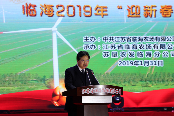 農場公司黨委書記黃禮慶在演出前作新春致辭。他說,在習近平新時代中國特色社會主義思想和黨的十九大精神指引下,在集團公司黨委的領導下,2018年全體職工共同努力、辛勤工作,臨海取得了豐碩的成果。農場公司化改革、企業辦社會職能及“三供一業”分離移交等工作全面推進;林業轉型升級初見成效,與射陽縣旅游局、旅投公司進行了廣泛合作;信用管理貫標獲得省級示范單位。分公司農業生產成效顯著,生產管理水平保持農發公司第一方陣,連續第三年獲得“先進企業”稱號。