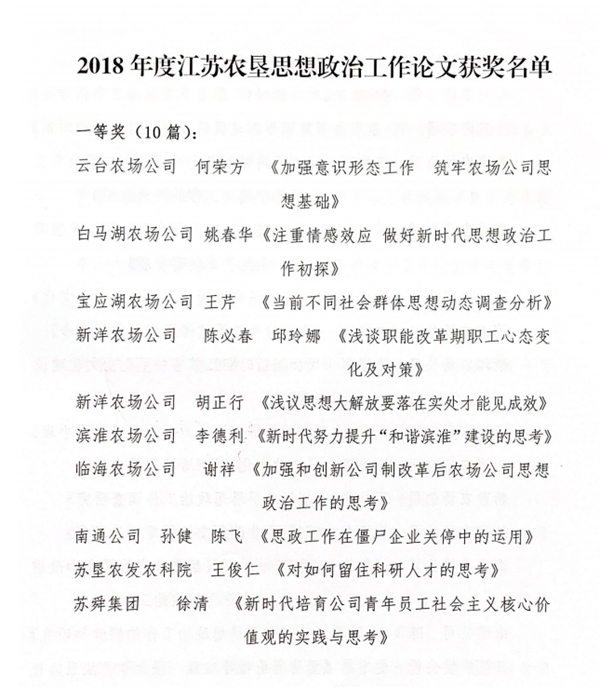 近日,從蘇墾部政研【2019】1號文獲悉,新洋八篇思想政治論文獲得集團公司2018年優(yōu)秀論文表彰。其中,一等獎2篇,二等獎2篇,三等獎4篇。