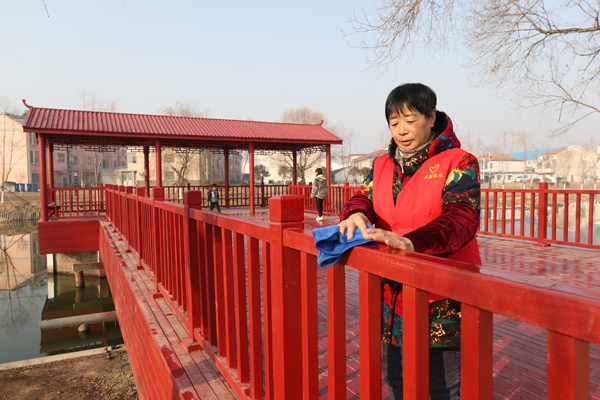 (圖為志愿者在清潔河邊公園公共設(shè)施)