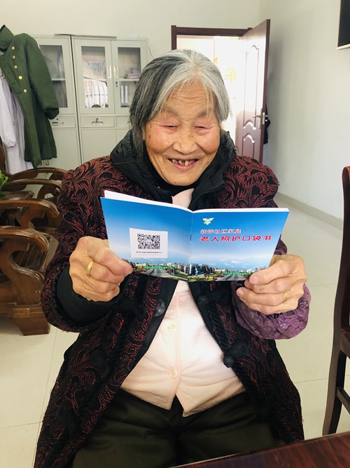 “這本小冊子好,圖片文字一樣不少,一看就懂,關鍵可以放在口袋里,隨時翻閱。”日前,新洋居家養(yǎng)老服務站健康小屋內(nèi),測量完血壓的仲奶奶翻看著一本“口袋書”,贊嘆道。