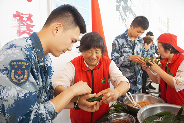 6月6日下午,新洋農場社區黨總支組織志愿者20余人走進駐場部隊,和官兵們齊聚一堂,迎端午、包粽子,用實際行動踐行新時代文明實踐精神,共譜軍民魚水情。同時為官兵們送上真誠的節日問候,給熱血男兒們帶來“家”的溫暖。