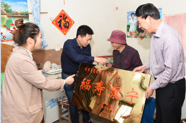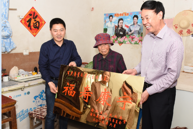 看到老人有如此強健的體魄和對答如流的話語后,宋艮高感慨地說,老人的健康長壽離不開社會的環(huán)境,更離不開家人的悉心照顧,他在向百歲老人獻上2000元的慰問紅包同時,還代表射陽縣人民政府和射陽縣老齡委把寫有百歲壽星朱老太生日?慶的福壽康寧字樣的福壽牌匾遞給了老人,并與老人一起合影留念。同時還希望朱榮美繼續(xù)照顧好老人的生活起居,真正使老人老有所養(yǎng)、老有所樂。