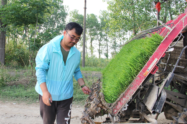 “師傅,調(diào)節(jié)平衡桿你一定要停車下來,安全第一啊!”在第六生產(chǎn)區(qū)18連的水稻田里,技術(shù)員王永智對插秧機駕駛員一再強調(diào),順手將帶去的礦泉水遞給駕駛員,駕駛員連連點頭,說一定改。烈日下,王永智曬得黝黑的臉上掛滿汗珠,滿臉的絡(luò)腮胡子顯得成熟了許多。跟他談起剛工作時因為對收割機駕駛員嚴(yán)格要求讓他停工,機車?yán)习鍤獾冒l(fā)狠話要揍他的事,王永智不好意思地笑了:“那時候不太懂工作方法,鬧出不少笑話。”