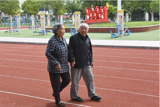 每天下午三四點鐘,我們在淮海職工休閑體育運動廣場上,經(jīng)??梢钥吹揭粋€80多歲的老人攙扶著妻子在廣場上散步,他們攙扶著有說有笑散步時的鏡頭,讓路過的人覺得他們好是恩愛。