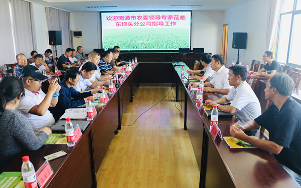 9月9日,南通市農業新技術推廣協會邀請通州區農業農村局副局長王國強、農藝師顧馬斌等領導,組織南通地區高校教授、鄉鎮企業經營主、家庭農場種植大戶等40余人蒞臨東壩頭觀摩在田水稻長勢長相并開展水稻穩產高產種植技術現場研討會,學習借鑒東壩頭稻麥周年超高產栽培經驗。東壩頭領導朱正海、王鋒陪同。