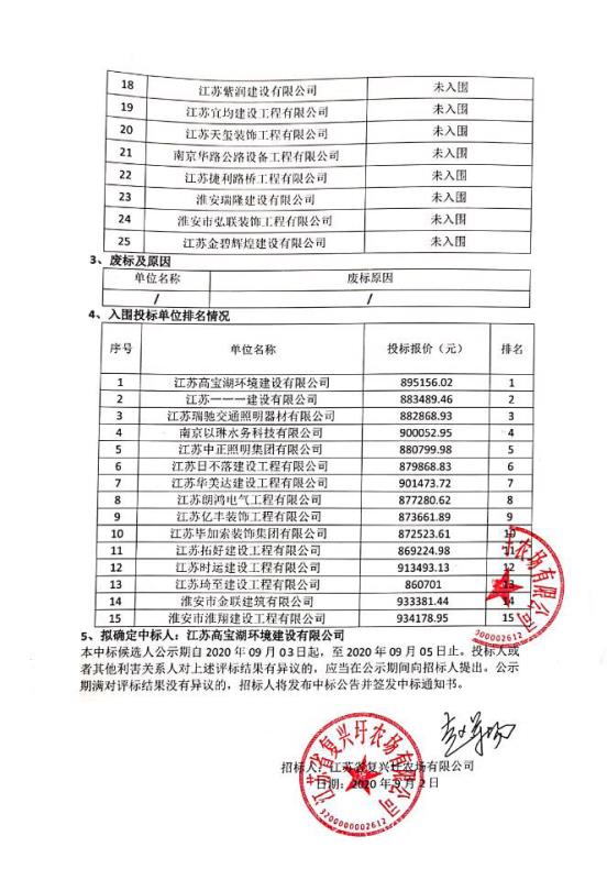 江蘇省復興圩農場2020年度環境整治及小城鎮提升項目生活污水處理及亮化工程中標候選人公示