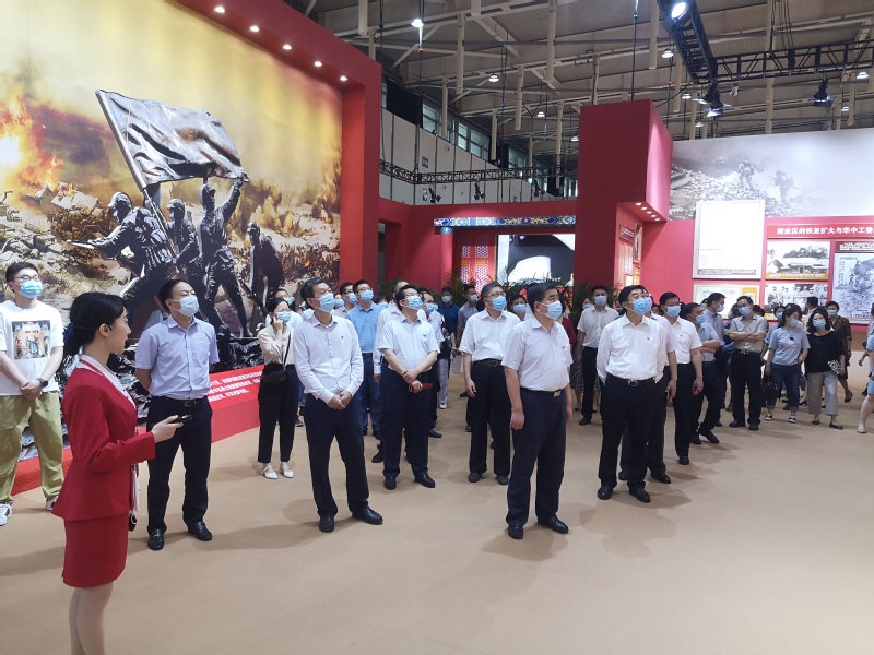7月5日下午,集團組織總部機關全體工作人員近百人參觀“百年征程,初心永恒——中國共產黨在江蘇歷史展”。集團公司黨委書記、董事長魏紅軍帶隊觀展。