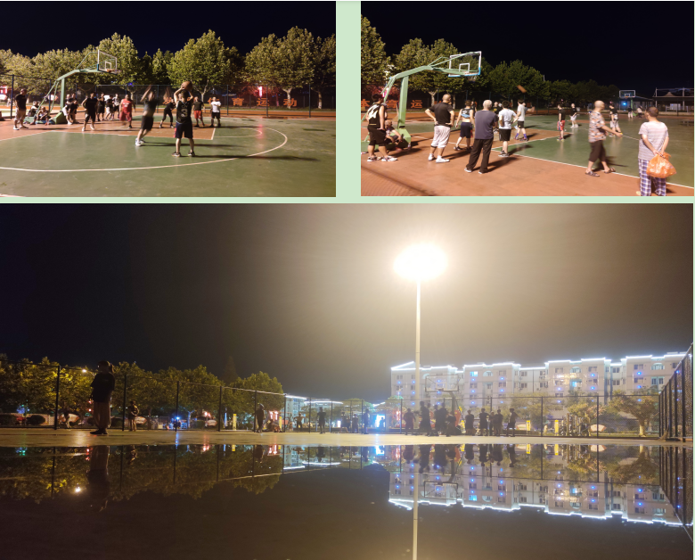 如今,天天火爆的籃球比賽成為淮海職工居民熱身運(yùn)動的新常態(tài),就連農(nóng)場許多的學(xué)生甚至是孩童也拍著籃球進(jìn)場投籃,籃球健身的良好氛圍,正為淮海健康體育運(yùn)動注入了新的活力。圖為夜幕下的籃球運(yùn)動場上職工居民追逐時的鏡頭。