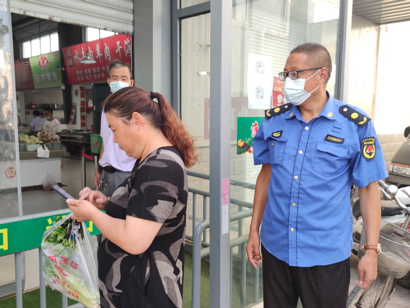 “還請你輸入下密碼。”說著,曹習生將手機遞到了買菜的居民手中。整個過程僅幾分鐘光景,就化解了居民沒戴口罩進出菜市場的難題。