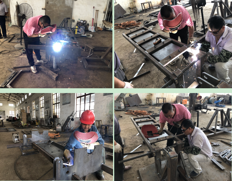 據(jù)農(nóng)機(jī)總站站長黃加青介紹,如果把全淮海可種植的田埂等邊際空置田全部利用起來,這塊面積相當(dāng)可觀,會對當(dāng)年夏糧產(chǎn)量的再一次提升。我們現(xiàn)在本著對農(nóng)田側(cè)邊播種機(jī)進(jìn)行圖紙樣機(jī)的組裝,并在設(shè)計(jì)整改中加以完善,如取得進(jìn)一步成功后,將會面向全農(nóng)墾推廣淮海的創(chuàng)新成果,將邊際潛力發(fā)揮出最大的增產(chǎn)效應(yīng)。圖為農(nóng)機(jī)總站工人在車間內(nèi)焊接側(cè)邊播種機(jī)鏡頭。