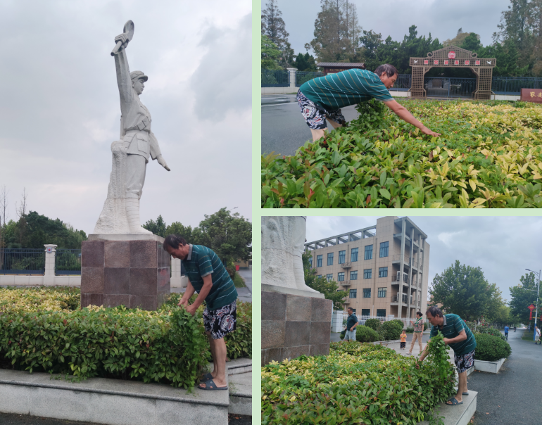 8月19日傍晚,在農(nóng)建四師紀(jì)念碑基座下的綠化帶前,只見一名男子正在旁若無人地抽拉纏繞在紅葉石楠上的藤蔓,不一會兒,他的手中就有一大摞拉扯上來的藤蔓,我僅從他的細(xì)心和認(rèn)真程度上,就可看出,他是一個有熱心,有愛心的人。