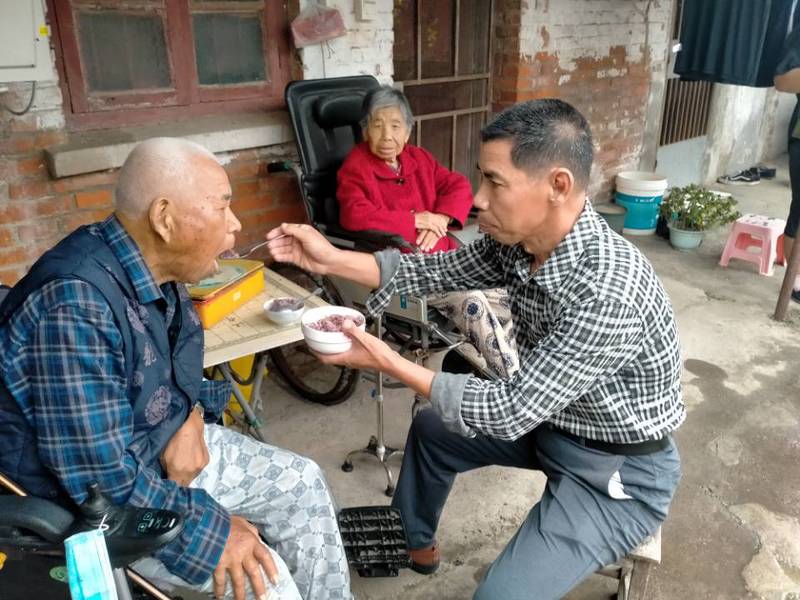 “天有不測風云、人有禍福旦夕”,本來照顧一個癱瘓的父親,十幾年如一日就已經足夠他忙碌的了,2015年70歲的老母親也患腦癱和心臟病,并伴有眼疾,視力幾乎失明。2019年由于眼睛視力低下,走路一不小心,又把腿摔斷了,造成生活不能自理,就這樣唐素強一個人一下子就承擔起兩位老人的照料工作,為了方便更好的照顧雙親,他就搬到父母的住處,他每天都要給父母雙親擦拭、按摩身體,洗腳、洗滌,平時老人會感到無聊,精神不振,唐素強就利用閑暇的時間陪著父母說話解悶,為了讓老人盡快康復,自己從零學習康復方面的知識,挽扶老人進行康復鍛煉,經常用輪椅推著父親或母親外出,感受新鮮空氣,看看風景,調節父母情緒。
