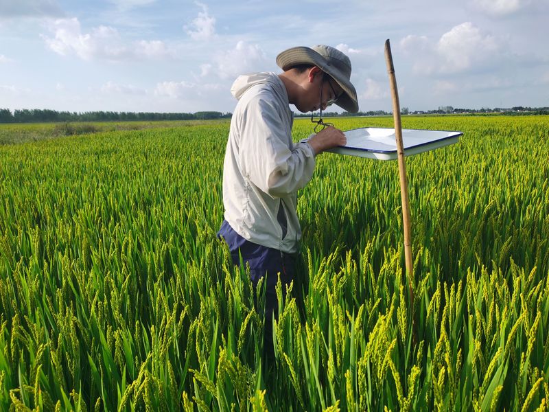 我聽后跟他說:“那可不是丐幫的,那可是我們生產(chǎn)區(qū)的技術(shù)員,正兒八經(jīng)揚州大學(xué)的農(nóng)業(yè)研究生,這幾天因為受燦都臺風(fēng)的影響,天天在水稻田拿棍拿盆在檢查隨臺風(fēng)遷飛過來的飛虱,他們可是我們稻田的守護者”。