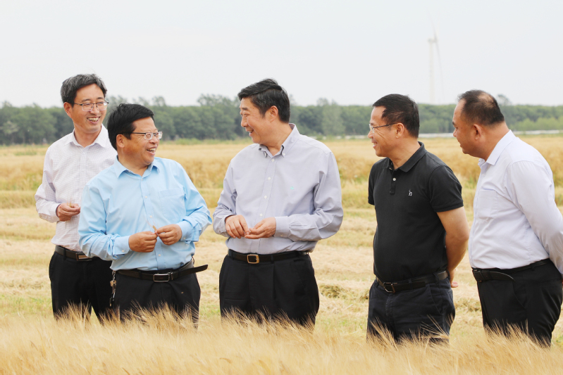 胡兆輝還先后考察了場面育秧、農田平整土地、大麥收割現場、小麥良種田、蘇墾農發股份公司臨海分公司農機總站、江蘇農墾智慧農業科技園項目區、勝利河生態護坡建設以及蘇墾米業臨海分公司新建倉庫現場。并赴蘇墾農發股份公司鹽城外拓基地順泰生產區,考察了在田小麥長勢、大麥收割及育秧情況。