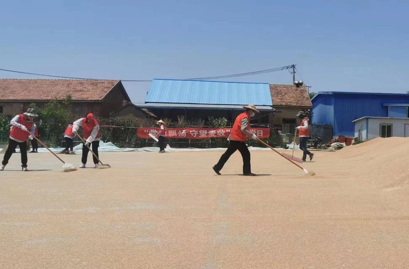 面對6月11日即將來臨的降雨天氣,東辛緊急吹響雨前顆粒歸倉“集結(jié)號”。各黨支部充分發(fā)揮戰(zhàn)斗堡壘作用,與掛鉤生產(chǎn)區(qū)聯(lián)合開展“黨旗飄揚(yáng) 守望麥?zhǔn)铡敝黝}黨日活動,把黨支部搬到田間地頭,讓黨旗在田間飄揚(yáng)。黨員佩戴黨徽,亮出身份做表率,走入晾曬場,用實(shí)際行動解決搶時收割、烘干晾曬等實(shí)際困難,“三夏”火熱實(shí)踐成為了開展主題教育的生動“課堂”和實(shí)踐“基地”。