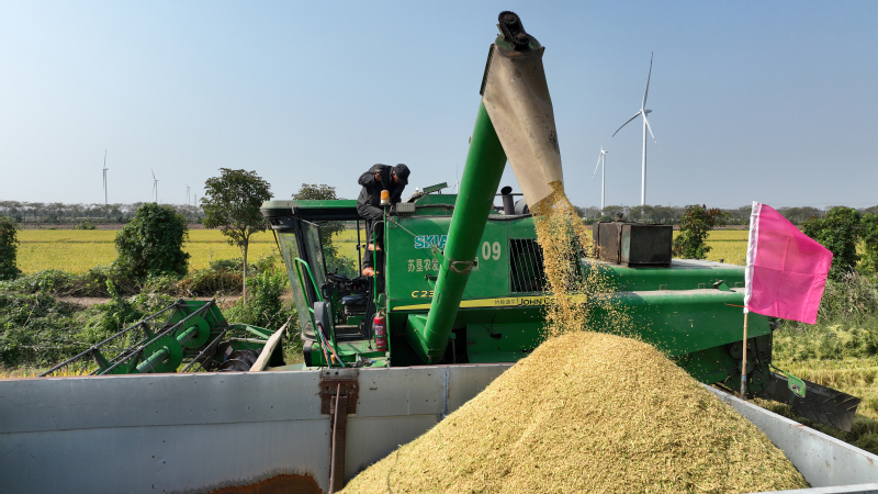 面對不穩定天氣因素,蘇墾農發新洋分公司強化機械保障,本部準備收割機58臺套,運糧車53臺,另調度好26臺小型履帶式收割機,隨時應對突發天氣情況。同時,加強場頭糧食調運管理,備好防雨防霉變應急保障設施設備,確保烘干設備正常運轉和安全,實現秋糧顆粒歸倉。