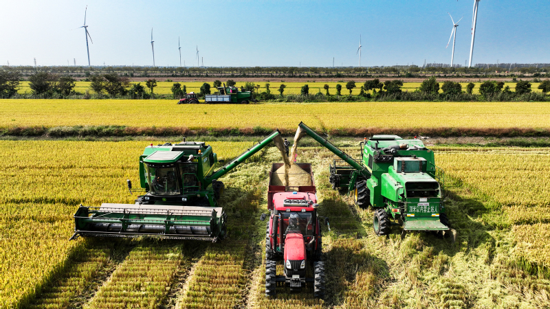 收割現場,蘇墾農發新洋分公司嚴格收割質量監督,把機械減損作為糧食增產的重點,加大收割質量檢查力度,減少收割損失,實現秋糧顆粒歸倉?!拔覀兠芮嘘P注天氣情況和水稻成熟度,統籌安排,堅持質量第一,進度第二,努力做到成熟一塊收割一塊,穩步推進收割進度?!鞭r業中心負責人介紹。蘇墾農發新洋分公司立足“前期‘揀’收、中期‘穩’收、后期‘搶’收”的原則,充分利用秋收早期溫度高,有利晾曬、烘干的條件,適時收、曬、烘,為秋播及時騰茬,確保11月6日前完成秋播田塊收割任務。