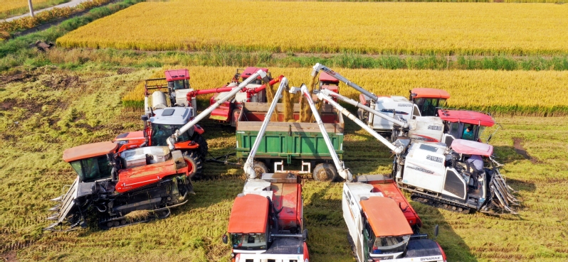 10月25日,蘇墾農(nóng)發(fā)江心沙分公司搶抓晴好天氣,組織收割機(jī)集中開展大規(guī)模水稻收割作業(yè),切實(shí)將“豐收在望”轉(zhuǎn)化為“豐收到手”,彰顯農(nóng)業(yè)“國(guó)家隊(duì)”擔(dān)當(dāng)。收割現(xiàn)場(chǎng),收割機(jī)、運(yùn)糧車來(lái)來(lái)往往,一片繁忙景象。