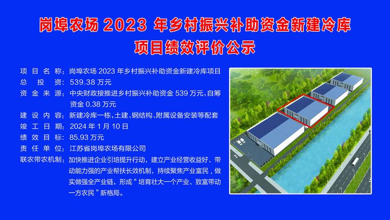 崗埠農場2023年鄉村振興補助資金新建冷庫項目績效評價公示