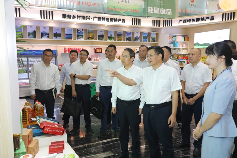 調研期間,吳本輝一行先后到廣西農墾旗下邕之泰公司、永新畜牧集團良圻獸醫(yī)技術中心、明陽農場公司現(xiàn)代農業(yè)基地、非糧生物質能技術全國重點實驗室、金光農場公司現(xiàn)代農業(yè)基地、桂墾良品展示展銷中心、廣西農墾展示館等地考察學習。在邕之泰公司,吳本輝對廣西農墾集團通過混改并購延伸生豬產業(yè)鏈,從無到有、從有到強的發(fā)展模式給予高度評價;在永新畜牧集團,雙方就生豬養(yǎng)殖模式、科技研發(fā)、成本壓降、環(huán)保治理等方面進行了深入交流;在廣西農墾明陽片區(qū)、金光片區(qū)現(xiàn)代農業(yè)基地,吳本輝一行考察調研了特色現(xiàn)代農業(yè)和設施農業(yè)發(fā)展情況,詳細聽取了廣西農墾特色農業(yè)發(fā)展、農產品和食品加工、市場營銷等方面的經驗做法;在非糧生物質能技術全國重點實驗室和廣西化工院,吳本輝對廣西農墾堅持科技創(chuàng)新賦能、深化科技人才隊伍建設、加速科技成果研發(fā)轉化等方面取得的成效給予了高度評價。