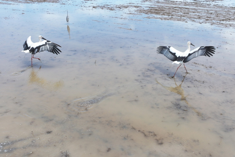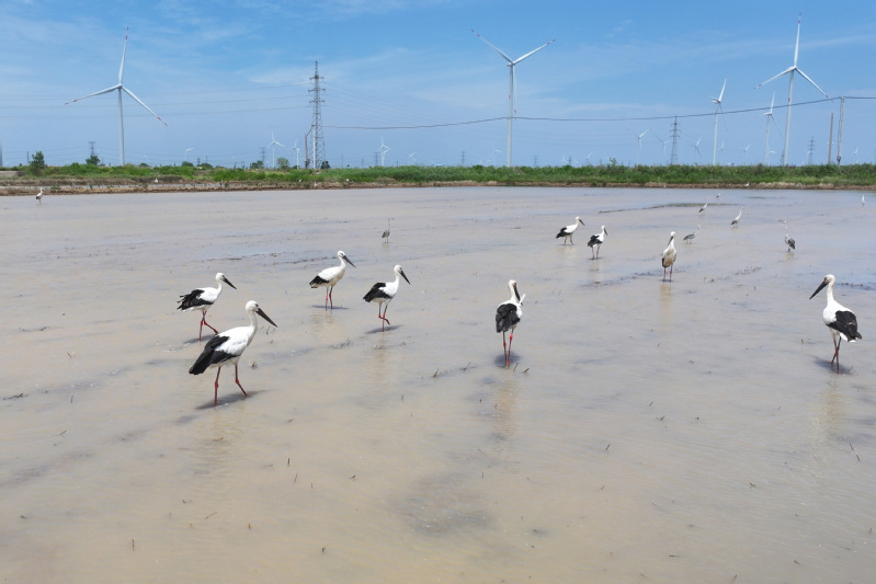 6月23日,江蘇省鹽城市射陽(yáng)縣臨海農(nóng)場(chǎng)順泰生產(chǎn)區(qū)的水田里,50余只國(guó)家一級(jí)保護(hù)動(dòng)物東方白鸛姿態(tài)優(yōu)雅,正悠然漫步、覓食,與水田的碧波相互映襯,構(gòu)成一幅靈動(dòng)的生態(tài)畫(huà)卷。