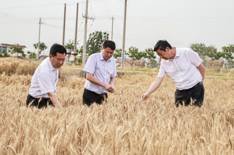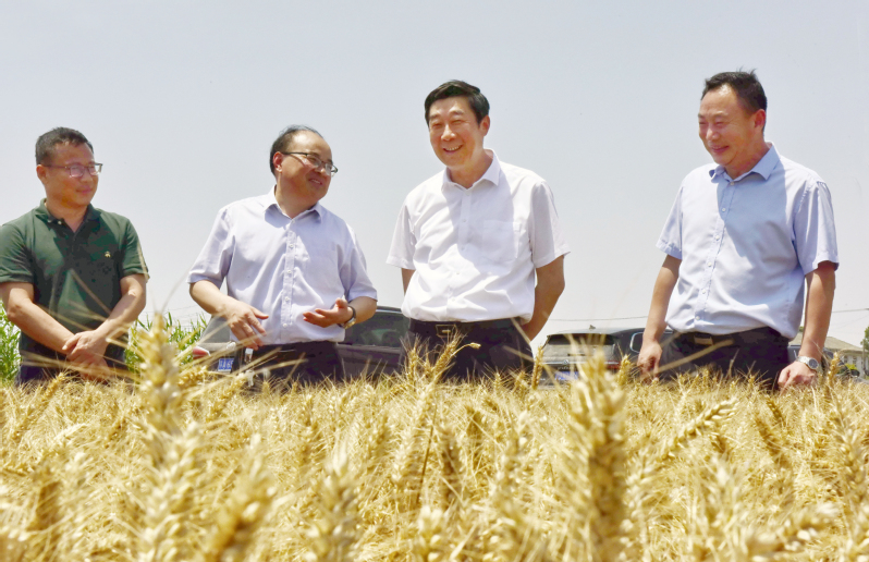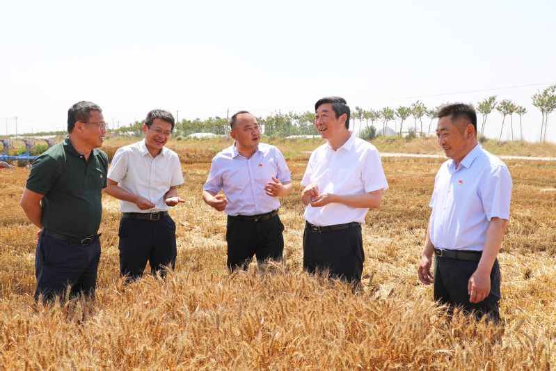 6月12日下午,集團(tuán)公司黨委書記、董事長魏紅軍到東辛調(diào)研。他強(qiáng)調(diào),要深入扎實(shí)開展學(xué)習(xí)貫徹習(xí)近平新時(shí)代中國特色社會(huì)主義思想主題教育,把“學(xué)思想、強(qiáng)黨性、重實(shí)踐、建新功”總要求貫穿始終,堅(jiān)持問題導(dǎo)向,深化調(diào)查研究,持續(xù)提高發(fā)現(xiàn)問題、研究問題、解決問題的能力,以實(shí)實(shí)在在的工作業(yè)績檢驗(yàn)主題教育成果。魏紅軍針對東辛漁光互補(bǔ)項(xiàng)目前期規(guī)劃中可能存在的問題,前往灌云洋橋漁光一體光伏發(fā)電項(xiàng)目現(xiàn)場考察,詳細(xì)了解相關(guān)經(jīng)驗(yàn)做法。隨后在東辛小麥制種大縣項(xiàng)目現(xiàn)場聽取“三夏”工作情況介紹,并對東辛“三夏”工作取得階段性勝利表示肯定。魏紅軍強(qiáng)調(diào),要堅(jiān)決抓好糧食安全這件頭等大事,決不能有任何松勁歇腳的思想,牢牢把握主動(dòng)權(quán),確保“三夏”取得全勝。要大力實(shí)施集團(tuán)公司強(qiáng)核戰(zhàn)略和種業(yè)振興行動(dòng),將小麥制種大縣項(xiàng)目打造成東辛的一張名片。邁上新征程,東辛要聚焦影響高質(zhì)量發(fā)展突出問題,進(jìn)一步樹立“謀大事、干大事、成大事”的鮮明導(dǎo)向,抓好產(chǎn)業(yè)發(fā)展,強(qiáng)化內(nèi)部管理,提升經(jīng)營效益,不斷增強(qiáng)核心競爭力,在事關(guān)全局、事關(guān)發(fā)展、事關(guān)長遠(yuǎn)的研究謀劃、難題破解上取得新進(jìn)展新成效,奮力在墾區(qū)高質(zhì)量發(fā)展和現(xiàn)代化建設(shè)中繼續(xù)當(dāng)好排頭兵,為打造現(xiàn)代農(nóng)業(yè)航母“江蘇