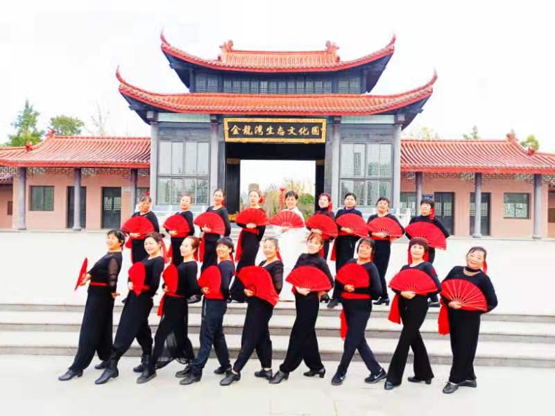 圖為城西居委會黨支部宣傳委員楊秀媛,發(fā)揮特長,熱心帶領居民學跳歌頌共產黨的紅色節(jié)目。