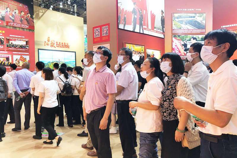 全體參觀人員追隨中國共產黨江蘇歷史的腳步,先后參觀了“建立黨的組織、為新民主主義革命勝利作出重要貢獻”“在探索中前進、進行社會主義革命和建設”“實行改革開放、推進中國特色社會主義江蘇實踐”“決勝全面小康、交出‘強富美高’新江蘇建設的時代答卷”等4個板塊。整個展覽以中國人民“站起來、富起來、強起來”為歷史脈絡,跨度時間長達百年,融圖片圖表、檔案文獻、文物實物、場景模型及新媒體手段在內的總展項3990多項,用“序廳、主體展區、尾廳”三部分,展示中國共產黨在江蘇的百年征程、巨大成就、寶貴經驗和偉大精神。