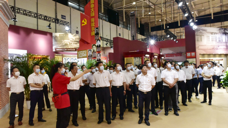 7月8日,白馬湖農(nóng)場公司組織領(lǐng)導(dǎo)班子全體成員、各單位黨政負責(zé)人和機關(guān)中層以上管理人員前往南京國際博覽中心,集體參觀“百年征程 初心永恒——中國共產(chǎn)黨在江蘇歷史展”,回望百年征程、見證初心永恒,深入學(xué)習(xí)中國共產(chǎn)黨在江蘇波瀾壯闊的歷史,深入開展黨史學(xué)習(xí)教育,接受革命精神洗禮。
