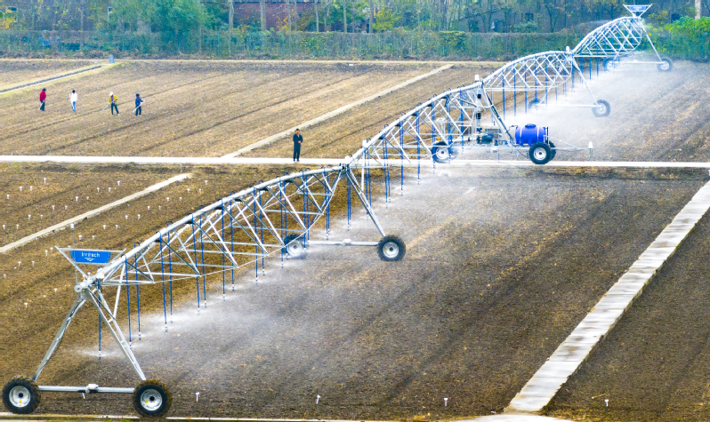近日,全長200米的新型平行行走式水肥藥一體機閃亮登場在白馬湖農場,隨著這臺“巨無霸”以橫向平移的方式,在田野上高效、精準、勻速地灌溉作業,密集的水霧從天而降,被均勻地噴灑在麥田中。這既是白馬湖農場引進智慧農機助力現代農業“跑”出加速度的一個縮影,更彰顯其響應集團號召,加速現代農業轉型的決心和行動力。據悉,此臺平行行走式水肥藥一體機總投資超50萬元,于今年6月正式投入使用。過去,傳統的溝灌方式在小麥育種、小面積試驗及良種繁育方面存在諸多限制,還面臨灌溉不均、資源浪費等問題,難以適應大規模集約化的生產需求。此次投入使用的新設備采用精準農業技術,可根據土壤濕度和作物需求,均勻、定時、定量地將水肥藥噴灑至作物根部區域。這樣的高效模式不僅大幅提升了水肥利用效率,還顯著降低了人工成本,同時減少了對環境的影響。這也標志著白馬湖農場在推動農業生產向低耗高效、綠色可持續發展方面邁出了重要一步。