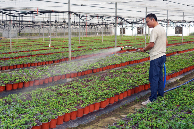 初秋時節(jié),走進(jìn)新洋農(nóng)場容器苗項(xiàng)目基地,素有“百日紅”之稱的紫薇花進(jìn)入了盛花期。基地管理人員梁亞洲正在為紫薇花瓶噴施營養(yǎng)液,順手修剪掉雜枝,為紫薇健康生長提供保障。紫薇花期長,是觀花、觀干、觀根的盆景良材,一棵培育良好、株高2米的紫薇花瓶容器苗木市場價可達(dá)2000元以上,具有良好的經(jīng)濟(jì)效益和景觀效果。“針對秋季紫薇生長特點(diǎn),我們還集中對紫薇進(jìn)行了抹芽、修枝、除草,保證苗木生長良好、發(fā)育健壯、形狀優(yōu)美。”梁亞洲說,紫薇是一種綠化點(diǎn)綴效果很好的觀賞苗木,尤其是夏秋季道路綠化開花小喬木不多,紫薇正好填補(bǔ)了這個季節(jié)的空白。2020年以來,新洋建成配有溫室大棚、水肥一體、智能控制、基質(zhì)配方、節(jié)水灌溉等設(shè)備的容器苗圃200畝,主打球類、造型類、花喬類等綠化苗木產(chǎn)品近萬株。在栽培方式上,林業(yè)公司大膽嘗試,自行研發(fā)優(yōu)化不同容器苗基質(zhì)配比,開展扦插培育試驗(yàn),實(shí)現(xiàn)了自繁自育栽培技術(shù)的新突破。“這黑色薄膜包裹的是控根器,由于現(xiàn)在溫度較高,水分蒸發(fā)快,容器苗基質(zhì)易缺水,要及時引水灌溉,濕透苗床,以保持土壤濕潤。”林業(yè)公司副總經(jīng)理蔡仿介紹,針對當(dāng)前溫度過高的情況,管理人員在后臺打開自動化噴淋設(shè)備,一體化水肥系統(tǒng)在