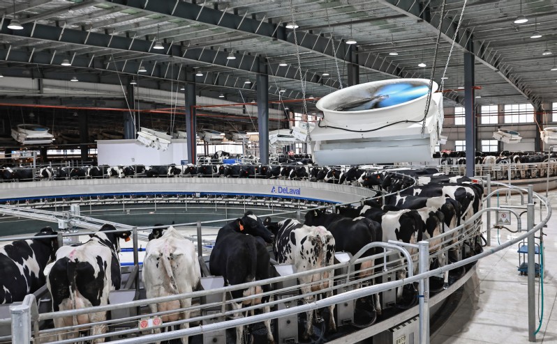 AI攝像頭、溫濕度傳感器、智能項圈、電子耳標……人工智能、物聯網、大數據系統集成聯動,一臺臺自動化設備在存欄8300余頭奶牛的牧場內高效運轉。這是蘇墾優然牧業生態智慧牧場內的一幕,也是江蘇農墾推進智慧農業發展,實現農業生產數字化的典型場景。大數據管理平臺將牧場繁殖、疾病、轉群、防疫、營養、DHI、成本等生產數據收集匯總,實現生產管理數字化、流程化、智能化,大幅提高了鮮奶的產量和質量,鮮奶質量優于歐盟標準,牧場成功入選2022年智慧江蘇重點工程。蘇墾優然智慧牧場建設主要分為數字化信息綜合平臺、牧場智能化設備、實時監控、無線網絡覆蓋及數據中心。無線網絡覆蓋為監控設備與智能化硬件設備提供網絡服務,實現牧場智能化設備數據的實時上傳和監控設備實時監控。大數據駕駛艙共分為17個模塊,展示牧場位置及牧場總體概況數據,包括牧場實時存欄、生態環保、飼養分級、圈舍分布、通知咨詢等。物聯網賦能提質添智。在蘇墾優然牧場,飼養員每天早上都會打開手機,“智慧養殖系統相當于給每頭奶牛頒發了可自動采集數據的電子身份證,個體牛只基本檔案一牛一碼、一目了然,查看奶牛身體狀況更加方便了。”原來還要為牛舍的事進進出出,現在只