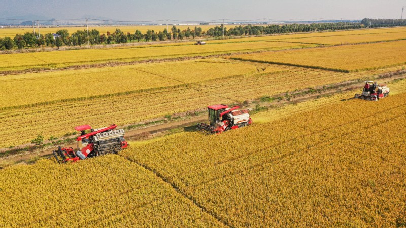 10月16日下午 ,蘇墾農發三河分公司全面拉開2023年“三秋”工作序幕,一臺臺收割機、運輸機來回穿梭在稻田間,繪就了一幅幅美麗的豐收盛景圖。